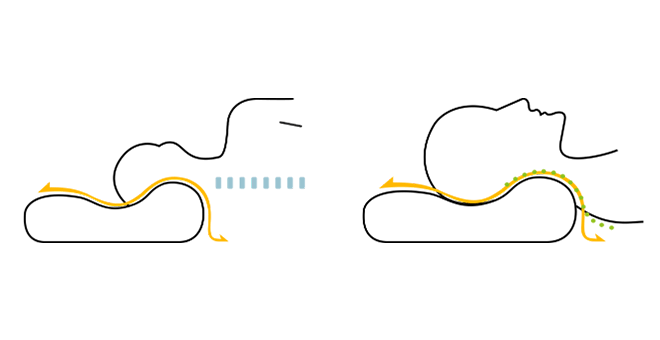 R角作为一个特殊弧形,通过个人睡眠习惯+颈部与脊椎的需求数据换算而出,随着头部360度不同的翻动,提供人体睡眠过程中的包覆和支撑。