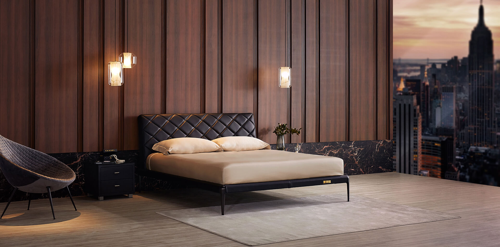 设计师把香奈儿经典的萎格纹元素延用到寝具中