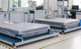 床垫铺面耐久性测试 140kg的滚筒来回滚压3万次 无破损、断簧,垫料无移位